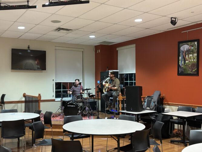 “I think it’s consistency… It has impact, and the affirmation of people that appreciate what we do. There’s people coming in, and they might be working on homework or just need a break from the stress of the day. We play a lot of covers and worship songs, and help people relax and just give them some background music. Then getting to talk to students after is always a joy.”