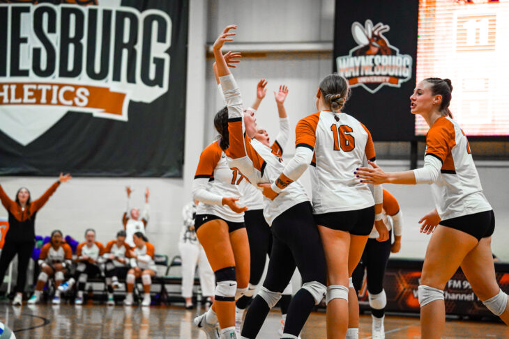 After losing the first two sets by three and six, Waynesburg rallied back, winning the third set by seven. The Yellow Jackets backed this set win by winning the next one by four, and finishing the rally by winning by six in the fifth to take the win.